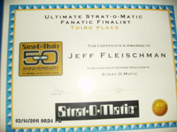 in New York City Jeff's Award (3rd Place) in the Ultimate Strat-O-Matic Fanatic Contest Larry Steinberg and former members Bob Morelli and Lawrence Green in New York City at Strat-O-Matic's 50th Anniversary